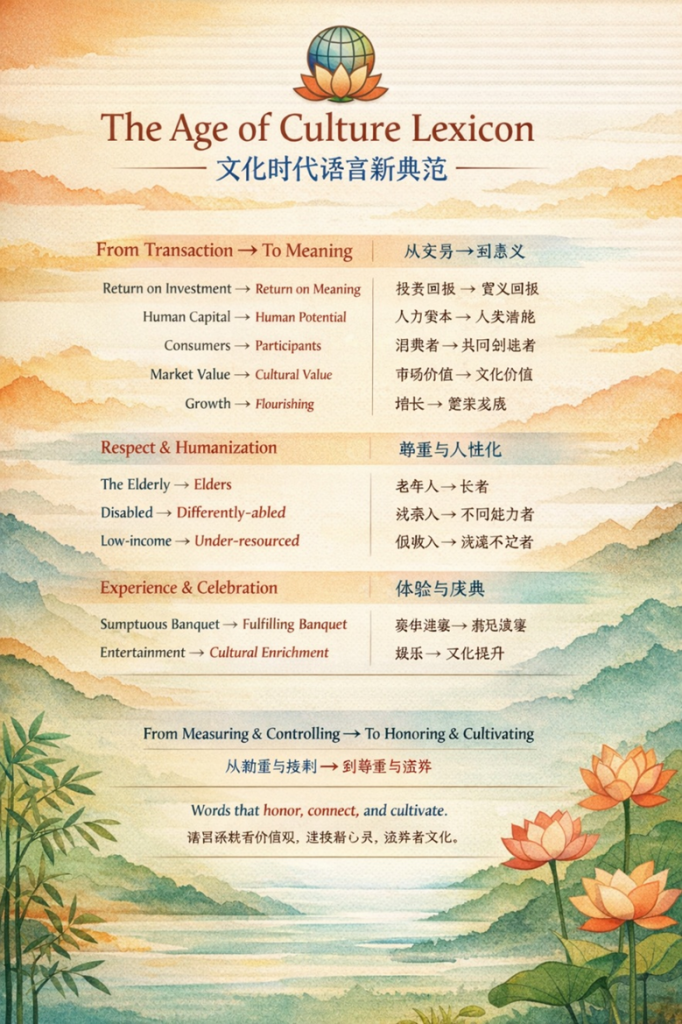 New “Correct Words or Language ” as The Age of Economics” moves into “The Age of Culture”. Early examples: Girls to Women. Negro to Black. New examples possibly: (ROI)  Investment to  (ROM) Meaning, and Sumptuous Banquet to Nourishing Gathering, etc. etc.- Billy – March 2026