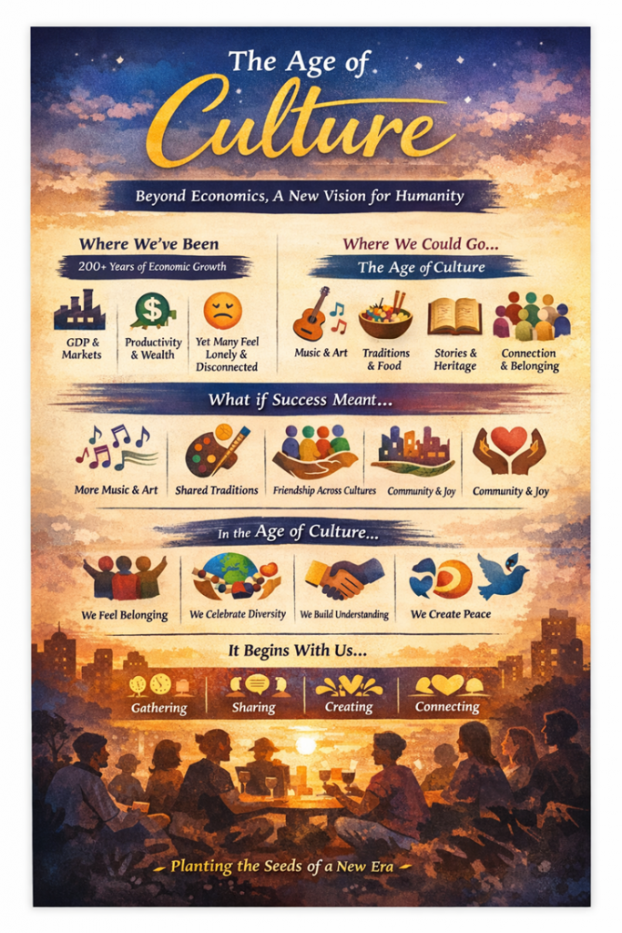 “What we are describing might be the beginning of an Age of Culture — where societies measure success not only by GDP, but by shared meaning, creativity, and belonging.”